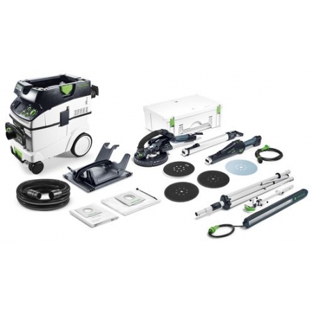 adaptér AD-ST DUO 200, statív ST DUO 200, Kontrolné svetlo STL 450, brúska s dlhým krkom LHS 225 EQ-Plus/IP, mobilný odsávač CTM 36 E AC-LHS, držiak nástrojov PLANEX, konektor na suchý zips KV-215 (5 ks), SYS-ToolBox, v kartónovom obale