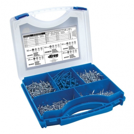 Sada samorezných skrutiek obsahuje päť najpoužívanejších samorezných skrutiek Kreg, uložených v pevnom puzdre. Vhodné pre začiatočníkov s Kreg prípravkami.
